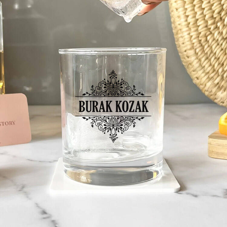 Kişiye Özel El Yapımı Desen İşlemeli Şeffaf Viski Bardağı