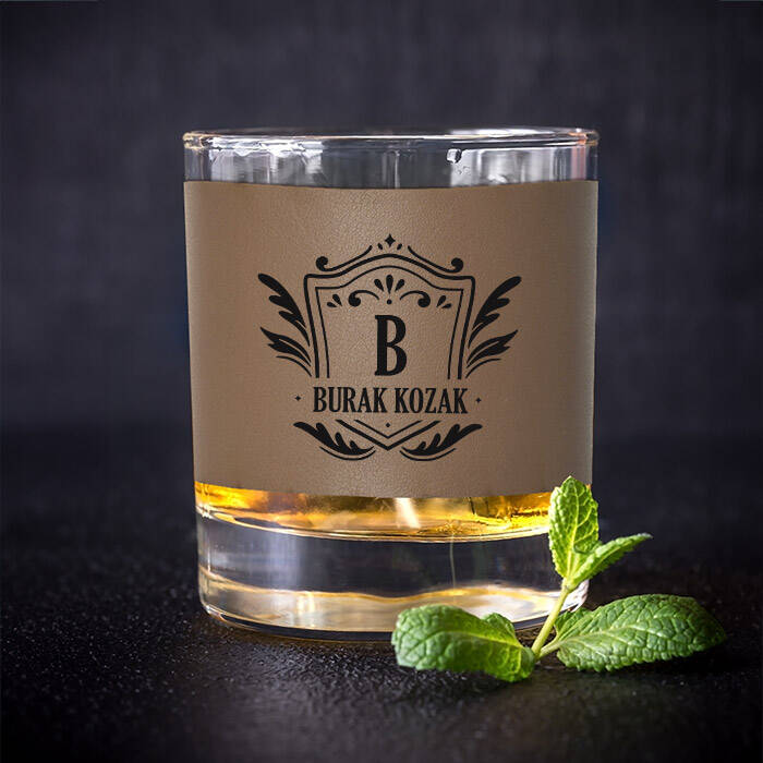 Kişiye Özel Elit Vizon Deri Kaplama Viski Bardağı