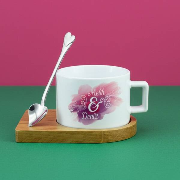 Kişiye Özel İki İsimli Kaşıklı Çay Fincanı