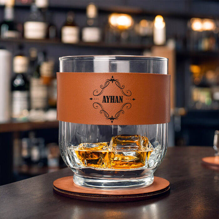Viski keyfi için sıra dışı bir deneyim sunan deri kaplı viski kadehi ve bardak altlığı setiyle özel anlarınızı taçlandırın. Sevdiklerinize özel günlerde sunabileceğiniz en şık ve zarif hediye seçeneklerinden biri olan bu deri kaplı viski bardağı seti, viski severlerin kalplerini çalacak. Kişiye özel tasarımıyla her anlamda özel hissettirecek olan bu set, estetik görünümü ve kaliteli malzemesiyle de göz dolduruyor. Premium kalitedeki ürün, sevdiklerinize verebileceğiniz en özel armağanlardan biri. Bir kişinin ismini viski bardağında görmek, ona duyduğunuz özel bağı ifade etmenin en anlamlı yoludur. Deri kaplı viski bardağı, isme özel bir dokunuşla kişiselleştirilmiş, bu şekilde viski keyfini daha da anlamlı hale getirir.