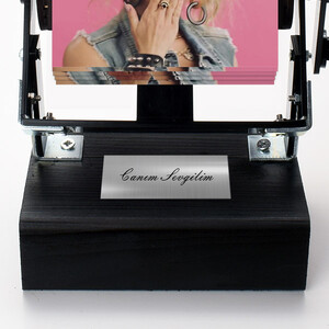 4 -) Mesajınız, film makinesi altında yer alan ahşap kaide üzerine metal plakaya Lazer ile yazılacaktır.5 -) Ürün, şık kutu içerisinde gönderilmektedir. Direkt sevdiğinizin adresine gönderebilirsiniz.