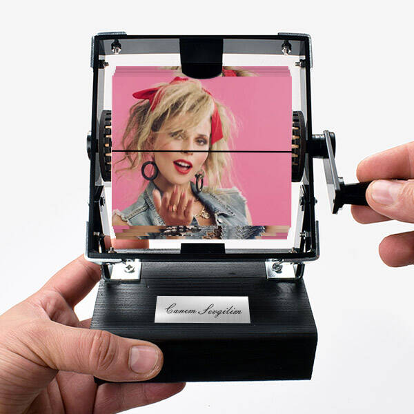 Peki El Sineması Film Makinesi Nasıl Çalışıyor? Kişiye Özel Jiroskop Film Makinesi, tıpkı sinema film makinelerinde olduğu gibi basit bir çalışma prensibine sahiptir. Şöyle ki; Sizden alacağımız 3 saniyelik videolarınızın her bir anı, birinci sınıf parlak fotoğraf kağıdı üzerine basılıyor ve ardından makinenin film makarası üzerine 24 fotoğraf karesi şeklinde takılıyor. Daha sonra fotoğraf kareleri, mekanizmanın yan tarafında yer alan çevirme kolunu hareket ettirmenizle birlikte görsel anlamda bir illüzyona dönüşüyor. Yani elle çevirdiğiniz ve momentum kazandırdığınız fotoğraflarınız harekete dönüşüyor.