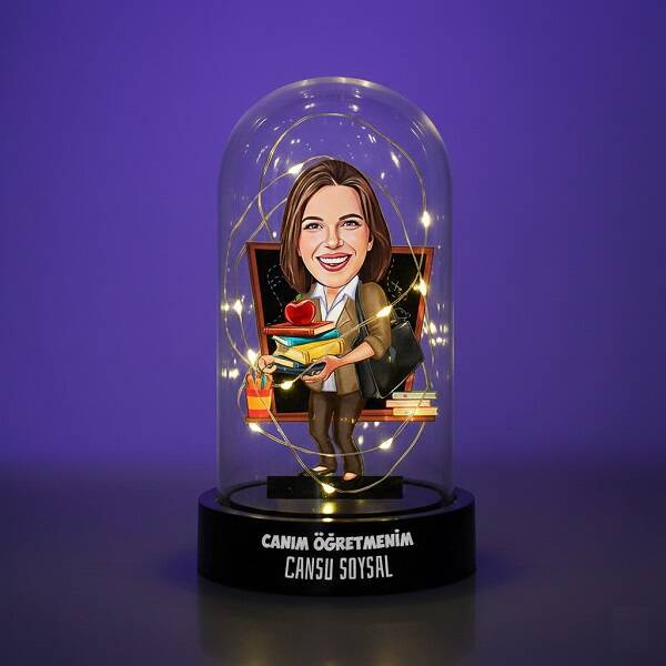 Kişiye Özel Kadın Öğretmen Karikatürlü Fanus Biblosu