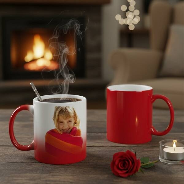 Sıcacık çayınıza sürpriz taşıyoruz. Satış rekorları kıran siyah sihirli kupa bardak modelinden sonra kırmızı renkte kupa modelimiz artık stoklarımızda. Bu kupa bardak da içerisine sıcak içecek konulduğunda kırmızı olan rengi beyazlıyor ve üzerindeki fotoğraf baskısını dışarı gösteriyor. Çay ve kahve keyfini gerçek bir sürpriz şölene çevirecek olan Kişiye Özel Kırmızı Sihirli Kupa Bardak, 2 fotoğrafınızla birlikte size özel olarak hazırlanıyor.