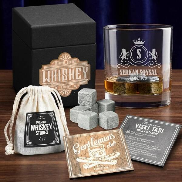 Resimdeki gibi böylesine güzel bir bardağı sevdiğiniz kişiye hediye etmeniz için illa da viski içecen birisi olması gerekmiyor. En sevdiği içecekleri bile keyif alarak yudumlayacağı ismine özel bir bardak her erkeği fazlasıyla memnun eder diye düşünüyoruz. Şık bir kutu içerisinde isimli ve isim baş harfli güzel bir viski bardağı, 2 adet bardak taban altlığı ve 6 adet mermer viski taşı ile hazırladığımız Kişiye Özel Premium Viski Seti, erkeğe yılbaşı hediyeleri içerisinde düşünülebilecek potansiyel mutluluk vaadi bulunan harika bir seçim. Sizler de biricik babanıza, müstakbel eşinize veya viski içtiğinden emin olduğunuz patronunuza Kişiye Özel Premium Viski Seti armağan ederek mutluluk yaşatabilirsiniz.