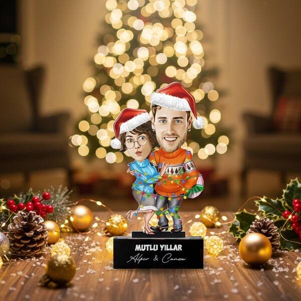 Kişiye Özel Yılbaşı Çiftleri Karikatürlü Biblo