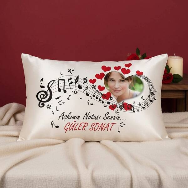 Türk Sanat Müziğinin en meşhur ve içerisinde "Şimdi dinlediğim tüm şarkılarda, bana her şey seni hatırlatıyor..." dizelerinin geçtiği şarkıyı bilir misiniz? Eğer siz de bu şarkıda geçtiği şekilde, dinlediğiniz her şarkıda sevgilinizi buluyor, aşkınızın izlerini görüyorsanız hayatınızın notasını bulmuşsunuz demektir. Kişiye Özel Aşkımın Notası Sensin Yastık, işte bu özel insana ithaf olunur.