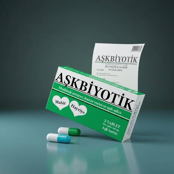 İlaç kutusu şeklinde Kişiye Özel Aşkbiyotik içerisindeki drajeleri aç ya da tok karına hiç fark etmez, sevgiye ihtiyaç duyduğunuz her anda istediğiniz dozda kullanabilirsiniz. Üzerinde isim yazılı kutusu da, içerisindeki esprili prospektüsü de tamamen size özel hazırlanan Kişiye Özel Aşkbiyotik yalnızca aşk ve sevgi içeriyor. Eğer sevgilinize duyduğunuz aşkı eğlenceli bir hediye ile göstermek istiyor ancak, bu hediyenin ne olabileceği hakkında türlü türlü senaryolar geliştiriyor ve işin içinden çıkamıyorsanız, Kişiye Özel Aşkbiyotik tam da aradığınız şey! Orijinal ilaç kutusunu andıran tasarımıyla Kişiye Özel Aşkbiyotik sevgilinize hem esprili, hem de eğlenceli bir hediye olacak.