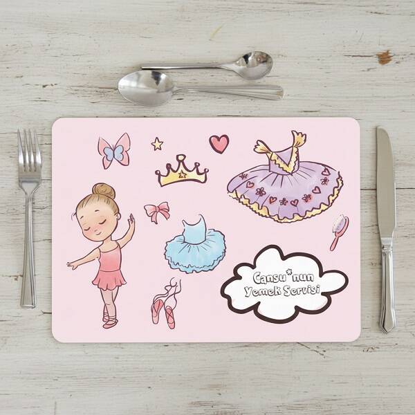 Sevimli küçük prensesinize, yemek yerken eşlik edecek, ismine özel şirin bir tabak altlığına ne dersiniz? Kız çocukları için özel olarak tasarladığımız Amerikan Servisi Tabak Altlığı, sevimliliği ile hem sofranıza şıklık katacak, hem de küçük hanıma yemek yemeyi sevdirecek. Üzerini kız çocuklarının çok beğeneceği; dans eden balerin, kelebekler, kraliçe kostümü, kraliçe tacı, kalp gibi şirin figürlerle süslediğimiz, Kız Çocuklarına Özel Amerikan Servisi sevgili kızınızın ismine özel.