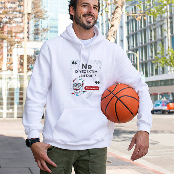 Esprili alzheimer tasarımlı kapşonlu sweatshirt, bu tasarım, alzheimer hastalığına dikkat çekiyor ve mizahi bir yaklaşım sunuyor. Soğuk hava koşullarında sizi sıcak tutarken, bu zorlu konuya farkındalık yaratmanıza olanak tanır. Alzheimer ile mücadelede destek sağlamak için anlamlı bir hediye seçeneği.
