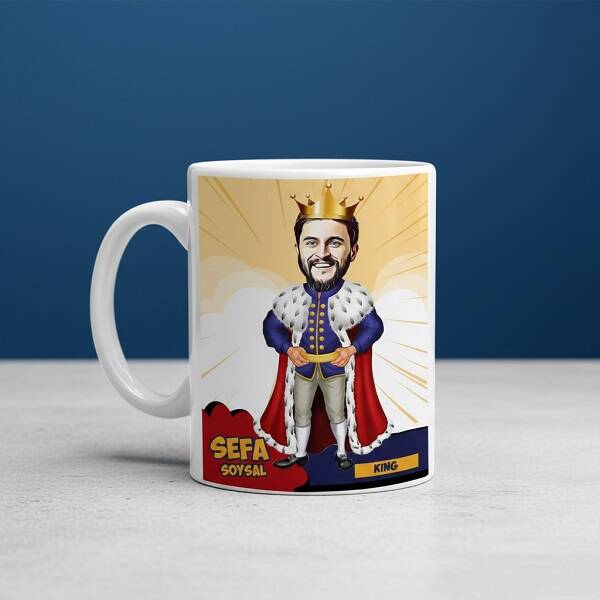 Kral kılığında hazırlanacak olan karikatür çalışması eminiz ki erkek sevdiklerinizi çok güldürecek. Profesyonel şekilde illüstrasyon programlarıyla hazırlanacak olan karikatür efektli kupa bardak, bu yılın en komik hediyelerinden bir olmaya aday. Yüzünüzdeki en belirgin hatlarının illüstrasyon programları aracılığıyla karikatürize edileceği ve kral tasarımıyla hazırlanacağı kişiye özel kupa bardak, erkek sevdiğinize sunabileceğiniz en samimi hediyelerden bir tanesi.Kişiye özel hediye olarak beğeninize sunduğumuz bu esprili kupa bardak ile hayatınızdaki en özel insan olan erkek sevdiğinize şimdiye kadar aldığı sıradan ve sıkıcı hediyeleri unutturun. Çay ya da kahve içmekten hoşlanan erkek sevdiğinize veya kahvesini içmeden duramayan erkek sevdiklerinizin çok hoşuna gidecek bu kupa bardak var olduğu her mekanda fark yaratacağı kesin. Sizin hediye edeceğiniz kral karikatürlü kupa bardak ile çayını veya kahvesini daha bir keyifli yudumlayacak; bir diğer pozitif yanı ise bu özel kupayı her kullandığında da sizi sevgiyle anacak.