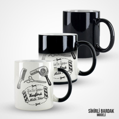 2 -) Kuaförlere özel hazırladığımız bu kupa bardağın beyaz ve Sihirli Kupa olmak üzere 2 farklı modeli bulunmaktadır.