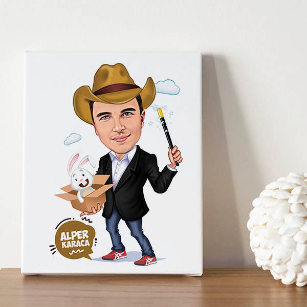 Kutudan Tavşan Çıkartan Erkek Karikatürlü Tablo