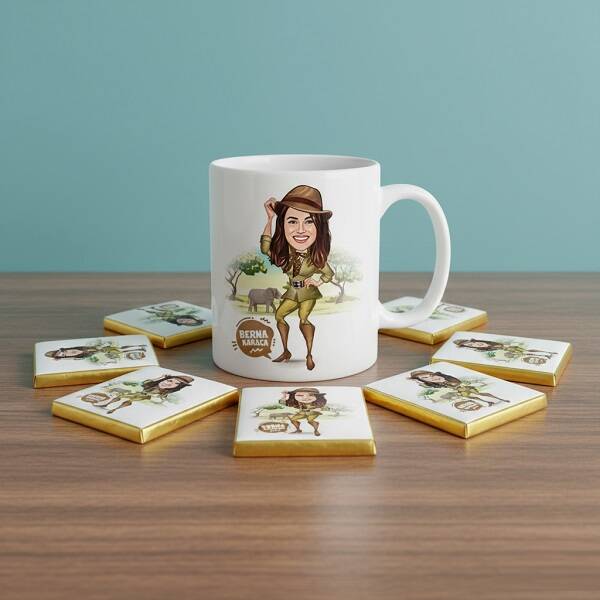 Macera ruhuyla dolu olan kadın için adrenalin dolu bir hediye: maceracı kadın karikatürlü kupa bardak ve çikolatalar, onun cesaretini ve enerjisini kutlamanın tatlı bir yolunu sunuyor.