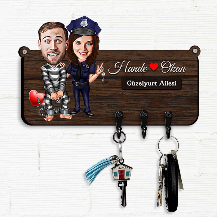 Mizahı ve esprili hediyeleri seven çiftler için özel olarak tasarlanmış "Mahkum ve Aşığı" temalı bu anahtar askısı, ilişkinizin eğlenceli ve komik yönünü ortaya çıkarır. Bu sıra dışı ve özgün tasarım, sadece anahtarlarınızı düzenlemekle kalmaz, aynı zamanda evinize girdiğinizde sizi ve sevdiklerinizi güldüren bir sanat eseridir. Bu ürün, sıradanlığın dışına çıkmak isteyenler için mükemmel bir seçimdir.