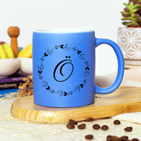 Mavi Renk Eşe Hediye Harfli Kupa Bardak