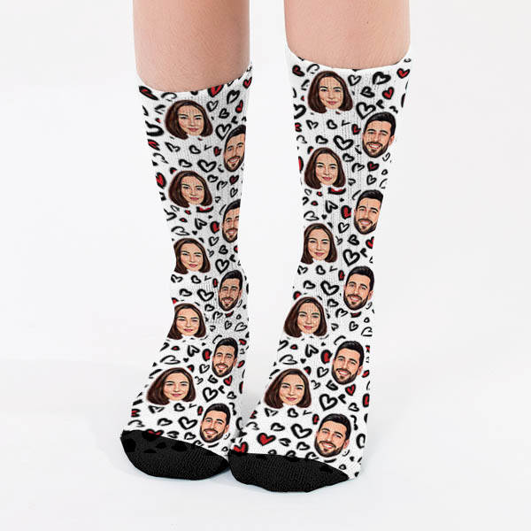 Mini Siyah Kalpler Tasarımlı Karikatürlü Sevgili Çorabı