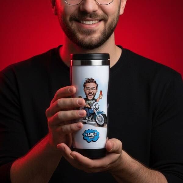 Sevdiklerinizi karikatürize ediyoruz. Motorcu karikatürlü termos bardak ile size arkadaşıma yapacağım en komik sürprizi yapmayı başardım dedirteceğiz sizlere. Yeni nesil alışık olmadığınız sıra dışı hediye çeşitliliği ile sizlere destek sağlıyoruz. Oldukça profesyonel ve premium kalitede hazırlanan karikatür efektli kişiye özel motorcu karikatürlü termos bardak, sevdiklerinizin anılarında büyük bir iz bırakacak değerli bir hatıraya dönüşecek.