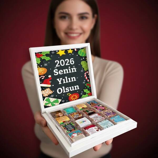 Hep birlikte yepyeni bir yıla, tatlı bir başlangıç yapalım mı? Nasıl mı? "Mutlu Yıllar","Nice Güzel Seneler","2026 Senin Yılın Olsun" tarzındaki özel mesajlar taşıyan Yılbaşı Çikolatasıyla tabi ki. Mutlu Yıllar Çikolatasını diğer klasik çikolatalarla karıştırmamanızı öneririz. Çünkü hem yılbaşına özel figürlerle süslenmiş şık tasarımlı kutusu, hem de içerisinde yer alan 16 adet( her biri ayrı ayrı yılbaşı kutlama mesajı taşıyan) özel ambalajlarıyla, tamamen yılbaşına özel hazırlanmış bir çikolata kutusu.