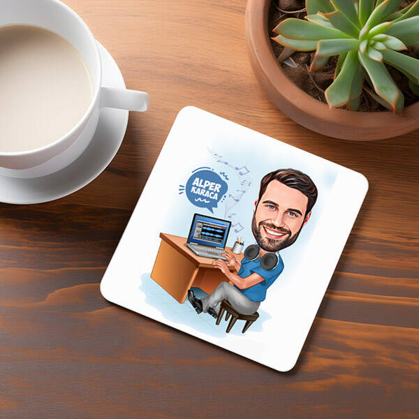 Müzik yapmayı seven erkekler için harika bir hediye: müzik yapmayı seven erkek karikatürlü bardak altlığı. Kişiye özel bu bardak altlığı, her kahve yudumunda size özel bir anı sunacak.