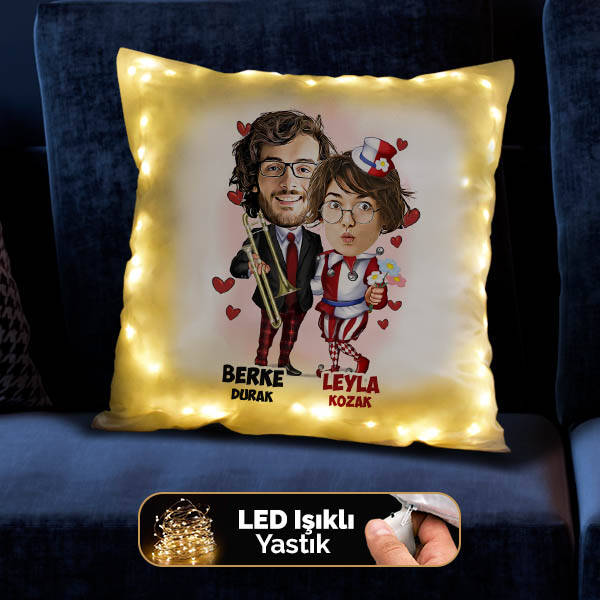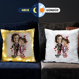 Neşeli Çiftler Karikatürlü Işıklı Yastık