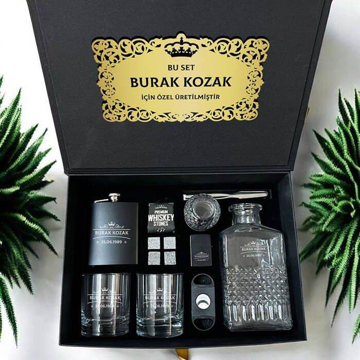 1 -) Siyah renkte fantezi kutu içerisinde gönderilmektedir. Kutu ölçüleri: 36 X 26 X 13 cm.2 -) Set içerisinde yer alan 2 Adet viski bardağı üzerine isim lazer ile kalıcı şekilde işlenmektedir. 8,5 cm X 9,5 cm genişliğindedir. Hacim 210 cc.3 -) Set içerisinde 2 adet Viski Bardağı + özel Kesede 4 Adet Viski Taşı + 1 Adet Metal Çakmak + 1 Adet Puro Makası + 1 Adet İçki matarası + 1 Adet Viski Şişesi ve Buz Tutacağı yer almaktadır.4 -) Viski tüketen sevdiklerinize harika bir hediye seçeneğidir.5 -) Bu premium set hafta içi saat 14.00'a kadar verilecek siparişler için aynı gün kargoya teslim edilmektedir.Ürün Etiketleri
