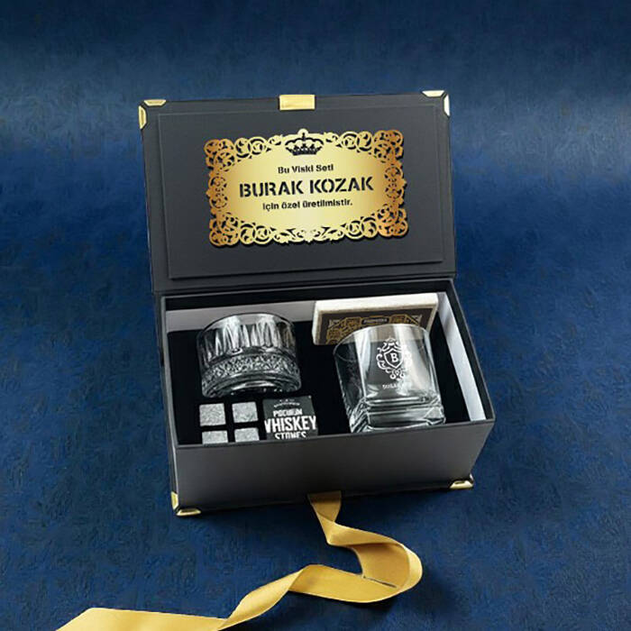1 -) Fantezi siyah renkte özel bir kutu içerisinde gönderilmektedir. Kutu ölçüleri: 9,5 X 12,5 cm.2 -) Set içerisinde yer alan viski bardağı üzerine isim lazer ile kalıcı şekilde işlenmektedir. 8,5 cm X 9,5 cm genişliğindedir. Hacim 210 cc.3 -) Set içerisinde 1 adet Viski Bardağı + Kese içerisinde 4 Adet Viski Taşı + 1 Adet özel tasarım TAŞ bardak altlığı ve 1 Adet Cam çerezlik yer almaktadır.4 -) Viski tüketen sevdiklerinize harika bir hediye seçeneğidir.5 -) Lüks Viski Hediye Kutusu hafta içi saat 14.00'a kadar verilecek siparişler için aynı gün kargoya teslim edilmektedir.Ürün Etiketleri