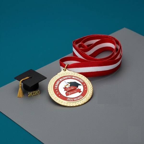 İlk okul veya orta okuldan mezun olan öğrencilerinize hatıra niteliğinde bir hediye vermek ve Onları geleceğe daha iyi motive etmek isterseniz, sınıfınızın ismine ve öğrencilerinizin adına - soy adına özel olarak hazırlatabileceğiniz Öğrenci Mezuniyet Madalyonu tam size göre. Altın madalya şeklindeki şık tasarımı, uygun fiyatı ve öğrencilerin ismine özel olarak hazırlanıyor oluşu, sene sonunda mezun olan öğrencilerinize bu madalyonu en güzel hediyelerden biri kılıyor.