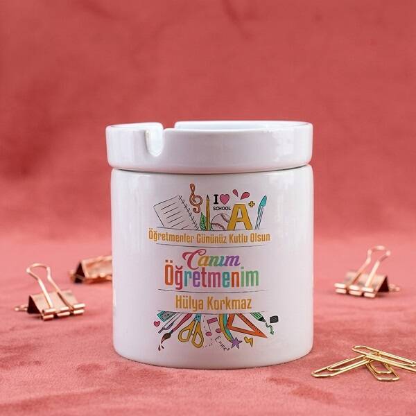 Gördüğünüz gibi bu seramik küllük, öğretmeninizin ismiyle hazırlanıyor. Kişiye özel hazırladığımız küllükler nasıl çok güzel ve oldukça da hayret uyandırıcı öyle değil mi? İsme özel hediye tasarımları ile aradıklarınızı kolaylıkla bulabiliyor olmanın tadını çıkarın.