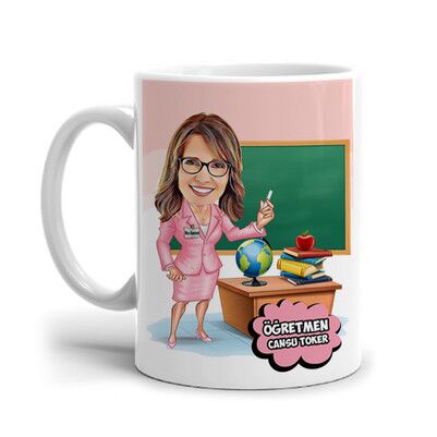 Kadın Öğretmen Karikatürlü Kupa Bardak
