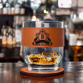Orijinal Kral Tacı Harfli Viski Seti Taba Derili