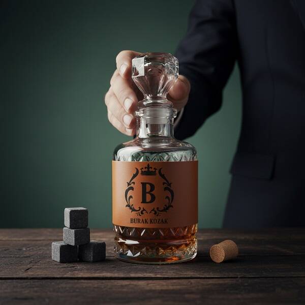 Bu özel viski şişesi, 8 cm x 22 cm x 12 cm boyutlarıyla 750 ml hacmine sahiptir ve kristal camdan üretilmiş tıpası ile yüksek kalitede bir üründür. Şişenin dış yüzeyi, el yapımı ve kaliteli deri ile kaplanmış olup, üzerine silinmez özellikte lazer ile isim işlemesi ve tasarım süslemesi yapılmaktadır. Ayrıca, şişenin etrafı kristal cam süslemeleri ile detaylandırılmıştır, böylece göz alıcı bir görünüm kazanmıştır.
