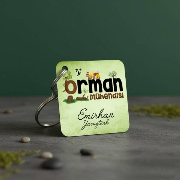 2 -) Orman Mühendisleri İçin Hediyelik Anahtarlık kare şeklinde olup, ön ve arka yüzüne isim yazılmaktadır.
