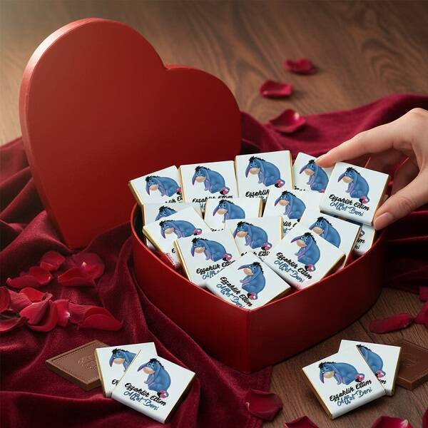 2 -) Ürün kutusu içerisinde; üzeri size özel fotoğraf, mesaj ve isim baskılı 24 adet sütlü çikolata bulunmaktadır.