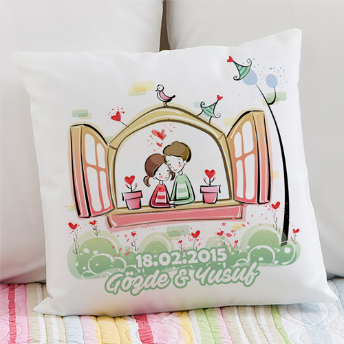 Yastığınız da aşkınız gibi değerli ve özel olsun! Tasarımında pembe panjurlu aşk evinin penceresinde sohbet eden sevimli çiftler yer alan Penceredeki Sevgililer Kare Yastık, hem çok şık, hem de çok romantik! İsminize özel olarak hazırlanacak bu romantik yastık modelimizde aşıklardan biri sizi, diğeri ise sevgilinizi temsil ediyor. Kız arkadaşınıza unutulmayacak bir armağan vermek istiyorsanız bu yastık modeli tam size göre...