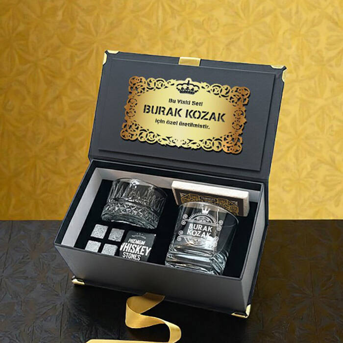 1 -) Fantezi siyah renkte özel bir kutu içerisinde gönderilmektedir. Kutu ölçüleri: 9,5 X 12,5 cm.2 -) Set içerisinde yer alan viski bardağı üzerine isim lazer ile kalıcı şekilde işlenmektedir. 8,5 cm X 9,5 cm genişliğindedir. Hacim 210 cc.3 -) Set içerisinde 1 adet Viski Bardağı + Kese içerisinde 4 Adet Viski Taşı + 1 Adet özel tasarım TAŞ bardak altlığı ve 1 Adet Cam çerezlik yer almaktadır.4 -) Viski tüketen sevdiklerinize harika bir hediye seçeneğidir.5 -) Lüks Viski Hediye Kutusu hafta içi saat 14.00'a kadar verilecek siparişler için aynı gün kargoya teslim edilmektedir.Ürün Etiketleri