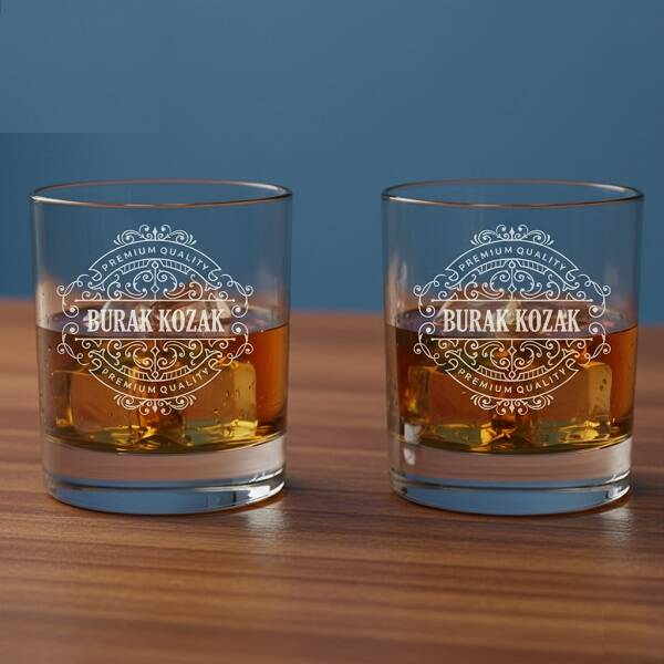 Premium Tasarımlı İsimli İkili Viski Bardağı