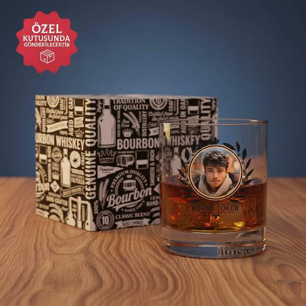 Renkli Fotoğraflı ve İsimli Viski Kadehi Şık Kutusunda