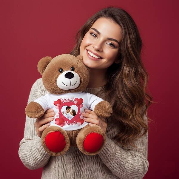 Resimli ve İsme Özel Romantik Pelüş Ayıcık