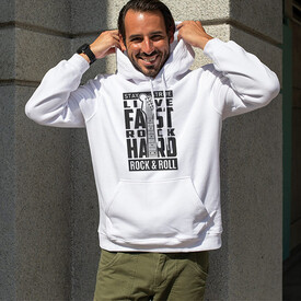 Rock & roll tasarımlı kapşonlu sweatshirt, rock müziğin enerjisini üzerinizde taşımanın yoludur. Bu sweatshirt, rock teması ve tasarımı ile sizi sahne ışıklarının altında hissettirirken, beyazın sade zarafetiyle şıklığınızı tamamlar. Rock'n'roll ruhunu yansıtın.