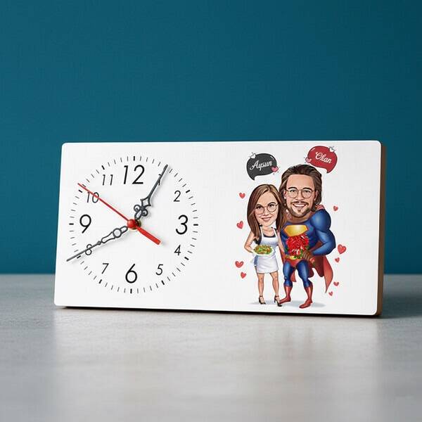 Romantik Kahraman ve Sevgilisi Karikatürlü Masa Saati