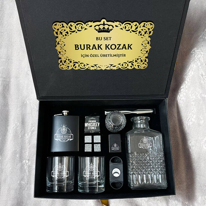 Göz kamaştırıcı bir estetikle harmanlanmış bu set, viski içmeyi basit bir eylemden çıkarıp tam anlamıyla bir ritüele dönüştürüyor. Setin içerisinde yer alan her bir parça, kaliteyi sadece görsel olarak sunmakla kalmıyor, dokunulduğunda o ağır ve tok hissiyle premium segmentin hakkını sonuna kadar veriyor. İsme özel lazer kazıma detayları, bu şık seti kişiye özel bir sanat eserine dönüştürerek yıllarca silinmeyecek bir hatıranın kapılarını aralıyor.
