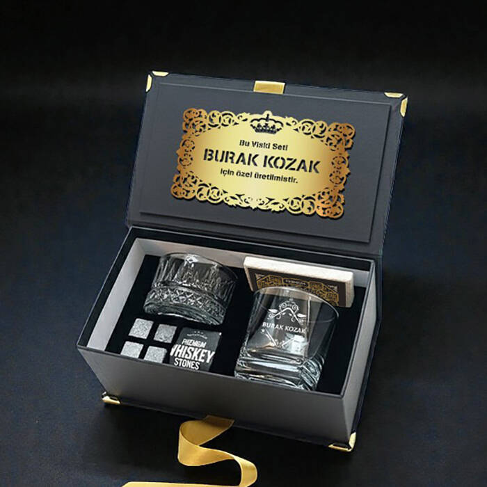 1 -) Fantezi siyah renkte özel bir kutu içerisinde gönderilmektedir. Kutu ölçüleri: 9,5 X 12,5 cm.2 -) Set içerisinde yer alan viski bardağı üzerine isim lazer ile kalıcı şekilde işlenmektedir. 8,5 cm X 9,5 cm genişliğindedir. Hacim 210 cc.3 -) Set içerisinde 1 adet Viski Bardağı + Kese içerisinde 4 Adet Viski Taşı + 1 Adet özel tasarım TAŞ bardak altlığı ve 1 Adet Cam çerezlik yer almaktadır.4 -) Viski tüketen sevdiklerinize harika bir hediye seçeneğidir.5 -) Lüks Viski Hediye Kutusu hafta içi saat 14.00'a kadar verilecek siparişler için aynı gün kargoya teslim edilmektedir.Ürün Etiketleri