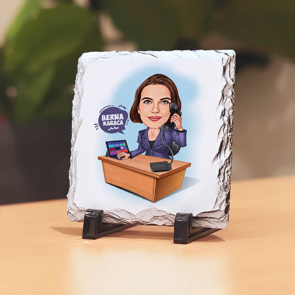 Sekreter kadın tasarımlı bu komik taş baskı, sevdiğine gülmeyi yaşatacak. Değer verdiğimiz kişiler her daim herkesin gözünde değer verilmesi gereken kişilerdir. Doğum gününde onları sevindirmek ve alınan hediyeler ile gülümsetmek önemlidir. Kişiye özel karikatürler ile hazırlanan doğal taş baskılar bugünde seçilebilecek en harikulade hediyeler arasında yer alabilir. Biricik kadın dostlarınız, bu esprili taş baskının güzelliği karşısında donup kalacak ve size teşekkür etmek için hangi cümleleri seçeceğini unutacaktır.