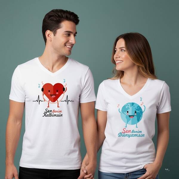 Örnek sevgililer olarak, birbirinize olan büyük sevginizle olduğu kadar; yazlık tişörtlerinizle de çevrenizdekileri kıskandırmak ister misiniz? Üzerinde şirin kalp ve dünya figürlerinin yer aldığı ve "Sen Benim Dünyamsın";"Sen Benim Kalbimsin" yazılı çift tişörtleri ile bu yaz tüm dikkatleri üzerinize çekeceksiniz. Aynı zamanda sevgilinize mükemmel bir sürpriz hediyeye dönüşecek olan Sen Benim Dünyamsın Çift Tişörtleri Hediyemen.com farkı ve uygun fiyatlarıyla işte karşınızda.