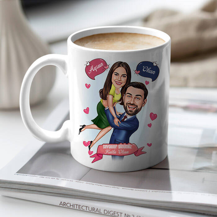 Bu eşsiz kupa bardak, sıcak kahvelerinizi ya da serin içeceklerinizi tüketirken sizin ve sevgilinizin capcanlı karikatürle anlam bulmasını sağlıyor. İçerisindeki özel tasarım, size özel hissettirirken, sevgilinizle paylaştığınız anların özel bir anlam kazanmasına katkı sağlıyor. Üzerinde erkek ve kadın isimlerinin bulunduğu karikatürler, sizinle sevdikleriniz arasındaki bağı güçlendiriyor.