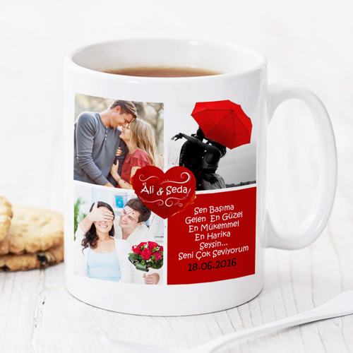 Sevgiliniz mi var derdiniz var! İşin şakası bir yana sevgilisi olanların kendi kendilerine en çok sorduğu sorulardan bir tanesi de tanışma yıl dönümleri, sevgililer günü, doğum günü gibi özel günlere sevgime ne hediye alsam sorusudur. İşte karşınızda bu sorunuzu en azından bu seferlik alt edecek olan Seni Canımdan Çok Seviyorum Kahve Kupası! Kişiye özel olarak hazırlanan, üzerine 3 fotoğrafınızla birlikte isimlerinizin ve kişisel mesajınızın yazılı olacağı bu romantik kupa bardakla sevgilinize şiir gibi bir hediye vermeniz an meselesi. Romantik olduğu kadar her zaman sevginizi gösterecek olan bu özel kupa bardak sadece Hediyemen.com'da.