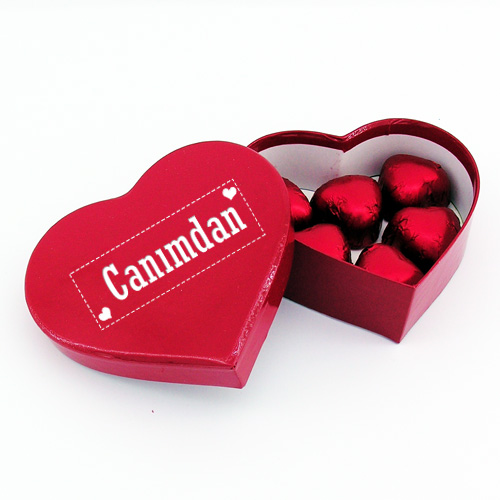 1 -) Birinci Kalp kutu içerisinde; rengarenk draje ve enfes lezzette çikolatalar bulunuyor. (Kutu Boyutu: 8 X 9 X 4 cm.)