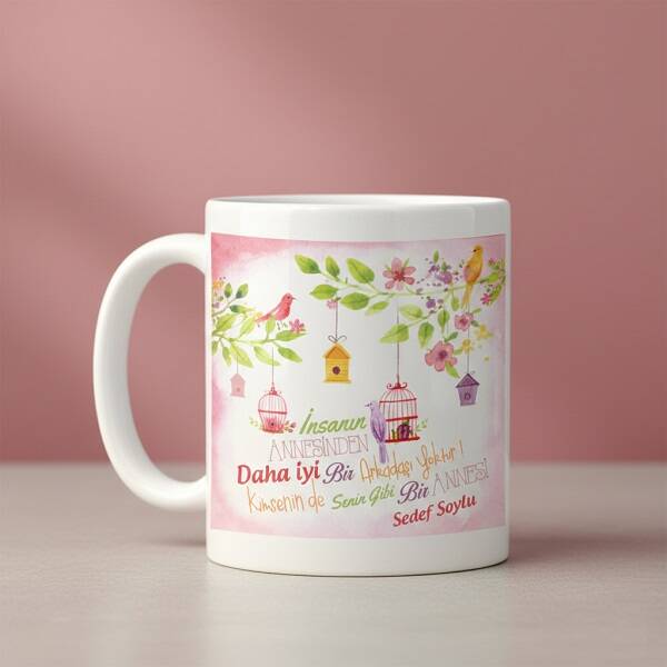 Tasarımında baharın en güzel renklerini ve huzur veren figürlerini kullandığımız Senin Gibi Anne Yok Kupa Bardak işte karşınızda. Sevgili annenize kahve içerken her zaman eşlik edecek olan bu özel kupa bardağın üzerine istediğiniz sevgi mesajınızı yazdırabiliyorsunuz. Yeşil, pembe, sarı renkler ve ağaç dalları, çiçekler, kuş resimlerinin üzerinde yer aldığı Senin Gibi Anne Yok Kupa Bardağı annenizin ismine özel hale getirerek Ona harika bir anneler günü hediyesi hazırlatabilirsiniz.
