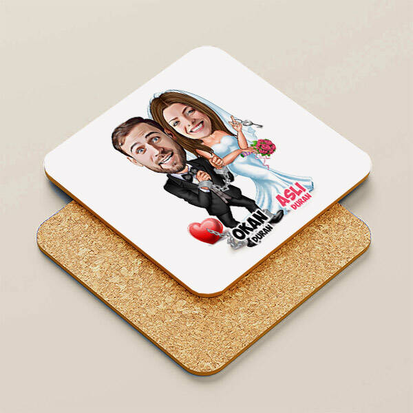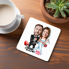 Bir ömür boyu mutluluk arayanlar için! Seninle bir ömür mutluluğa karikatürlü bardak altlığı, bu bağlılığı her an hatırlatır. Karikatürünüzle mutluluğunuzu ölümsüzleştirin.